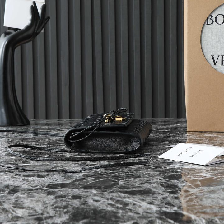 BOTTEGA VENETA 25S ANDIAMO POUCH 19 IN BLACK CALFSKIN GOLD HARDWARE