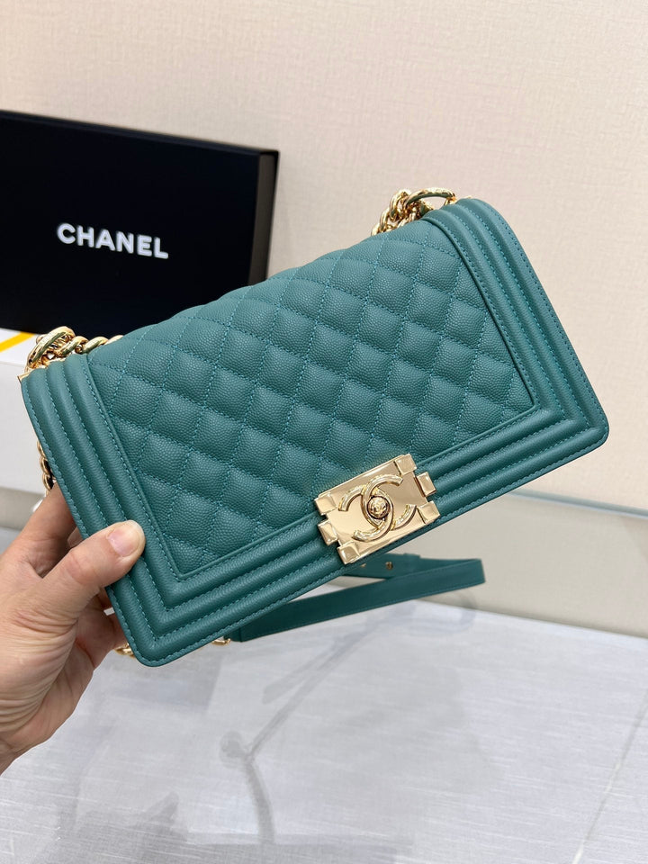 BOY BAG MEDIUM 25 EVERGREEN CAVIAR GOLD HARDWARE