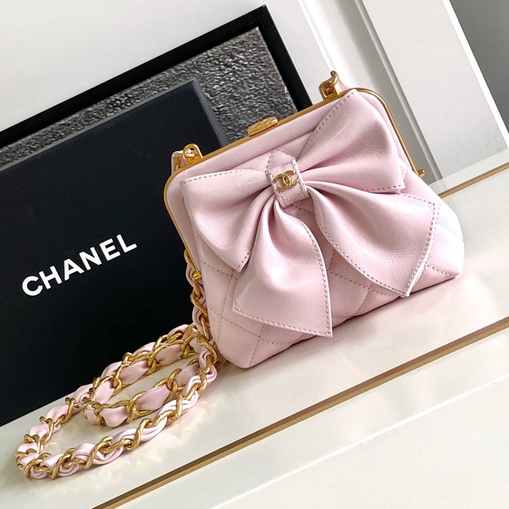 CC MINI 13 CLUTCH WITH STRAP IN LIGHT PINK LAMBSKIN ATTACH BOW