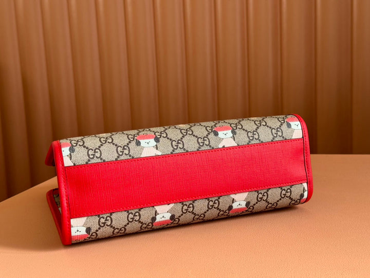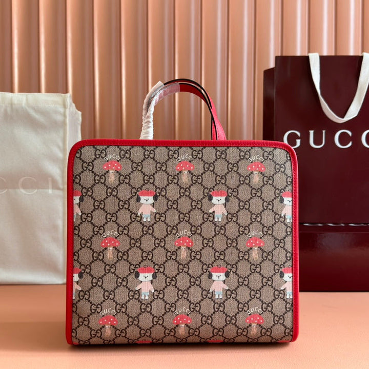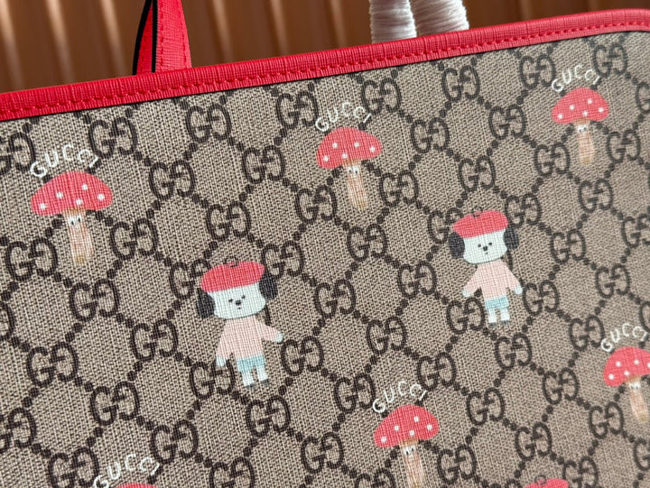 CHILDREN'S PRINTED DOG TOTE BAG 28.5 IN BEIGE AND DARK BROWN GG CANVAS RED TRIM