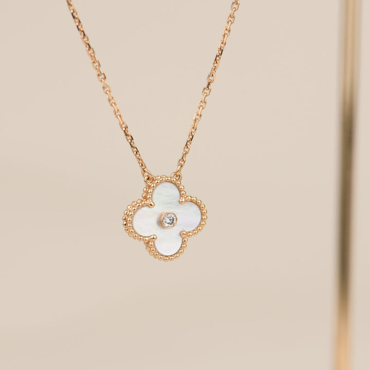 ˇMagic JewelryˇCLOVER 15MM DIAMOND WHITE FRITILLARIA NECKLACE