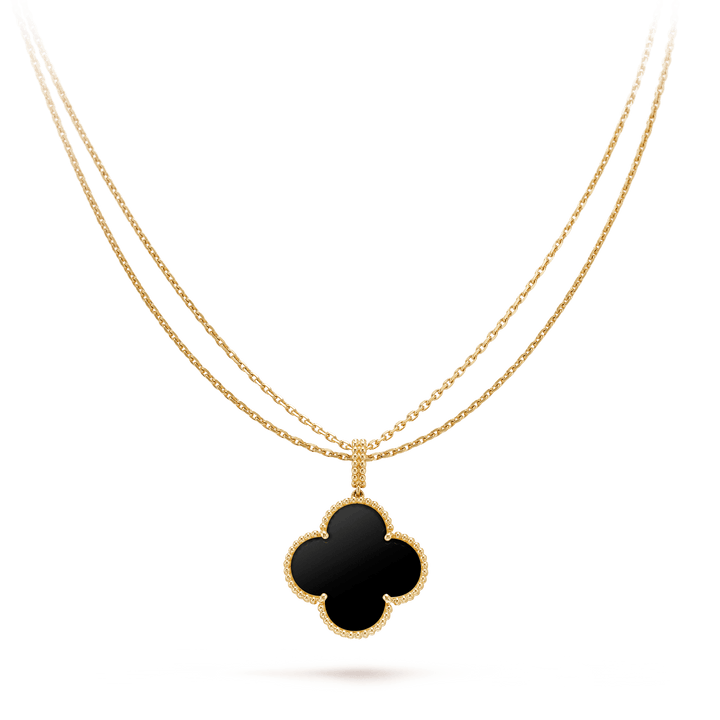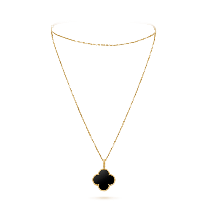 ˇMagic JewelryˇCLOVER 25MM GOLD ONYX BIG CLOVER NECKLACE