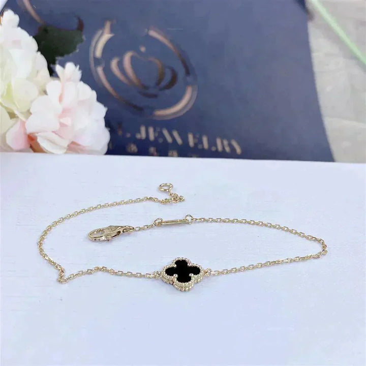 Four-leaf clover bracelets symbolize luck and good fortune. Each leaf represents different meanings such as love, health, wealth, and happiness. Four-leaf clover bracelets are considered a talisman, symbolizing good luck and auspiciousness. They have become a classic style and enjoy widespread attention and popularity. They bring blessings and auspiciousness to the wearer.