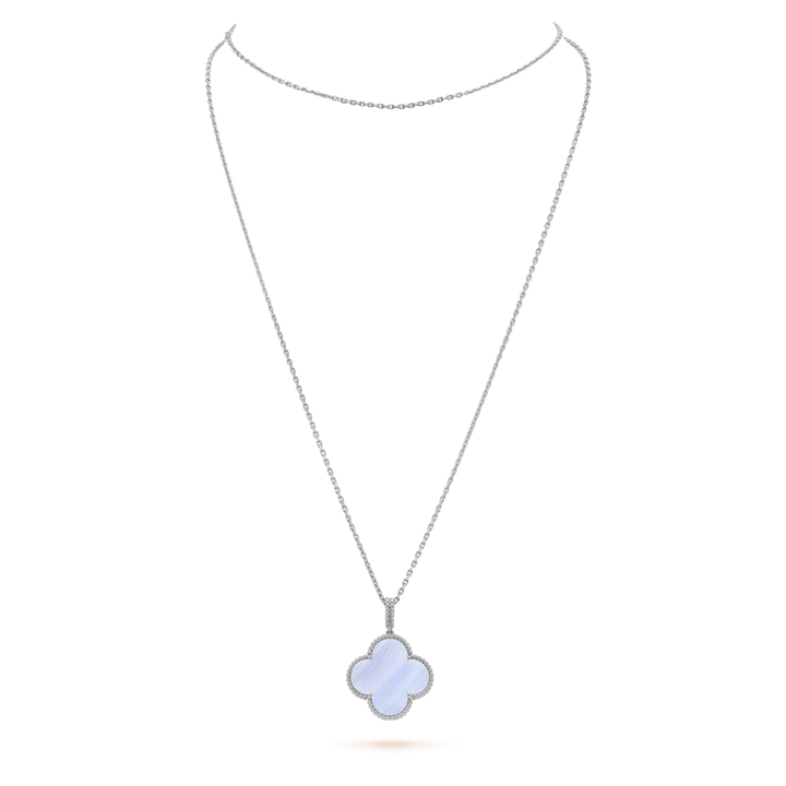ˇMagic JewelryˇCLOVER SILVER CHALCEDONY BIG CLOVER NECKLACE