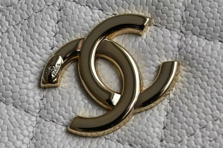 COSMETIC BAG 19 IN WHITE GRAINED CALFSKIN GOLD HARDWARE