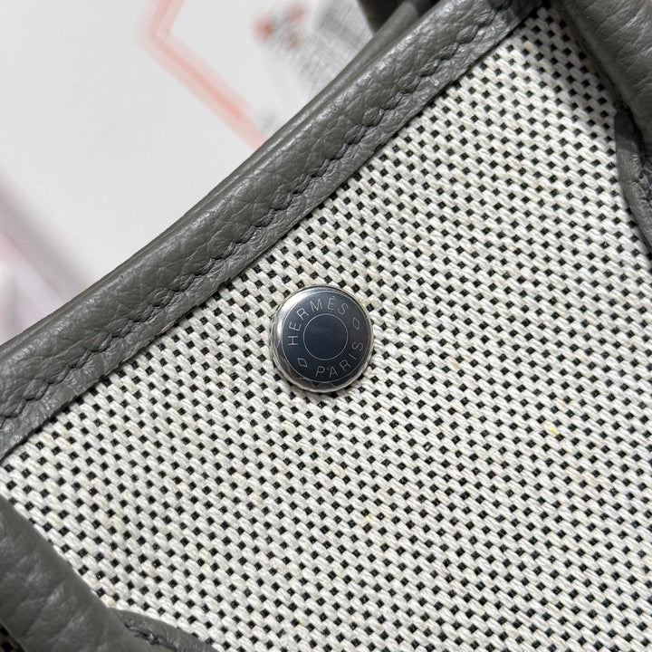 GARDEN PARTY 23CM IN WHITE TOILETS COTTON CANVAS AND GREY CALFSKIN