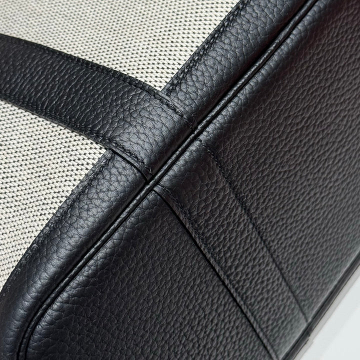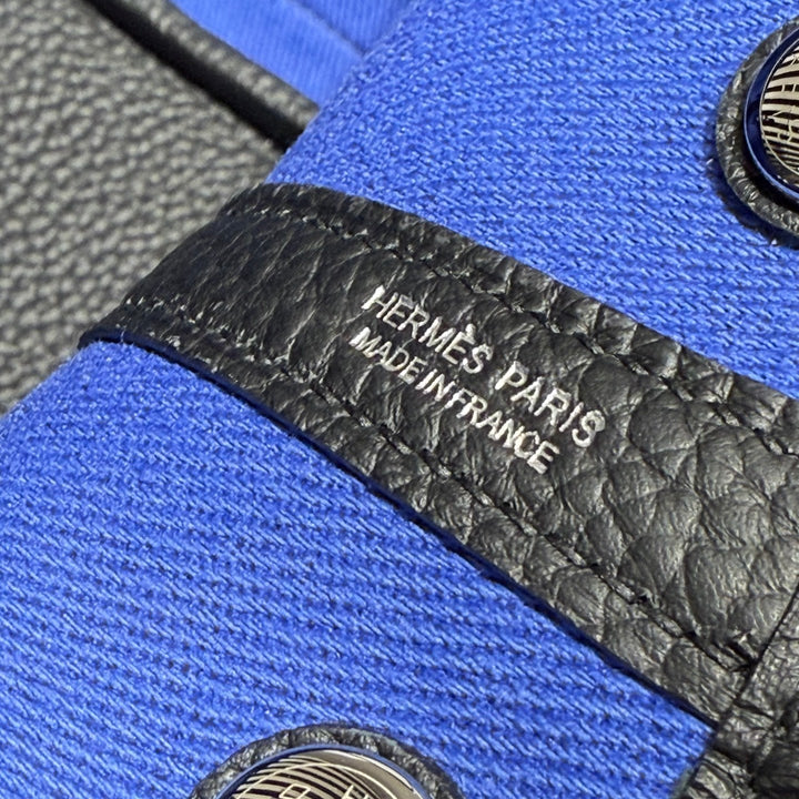 GARDEN PARTY 30CM IN WHITE TOILETS COTTON CANVAS AND BLACK CALFSKIN BLUE CANVAS ON SIDE OTHER
