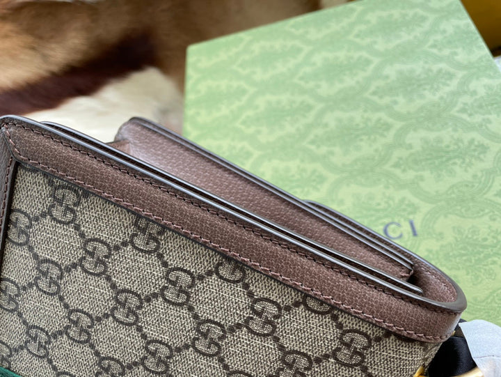 GG MINI 25 HANDBAG IN BEIGE CANVAS AND BROWN CALFSKIN