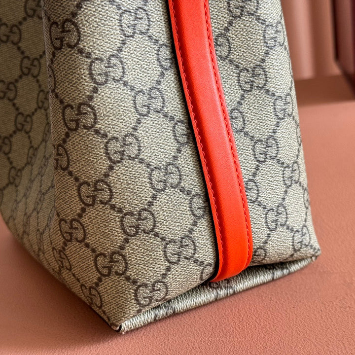 GUCCI 25S EMBLEM MINI BAG 19 IN BEIGE AND BLACK CALFSKIN