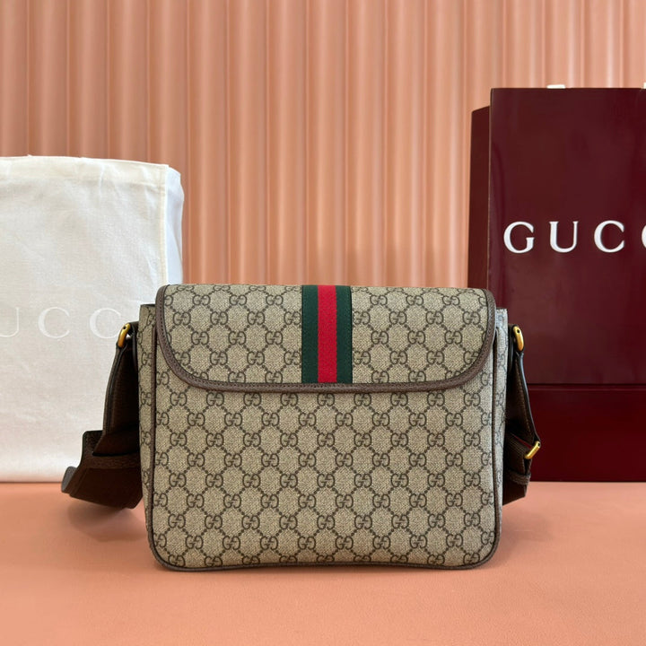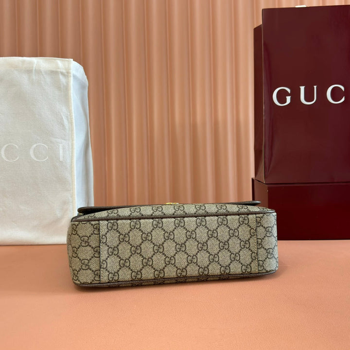 GUCCI 25S OPHIDIA MEDIUM CROSSBODY BAG 28 IN BEIGE CANVAS AND BROWN CALFSKIN