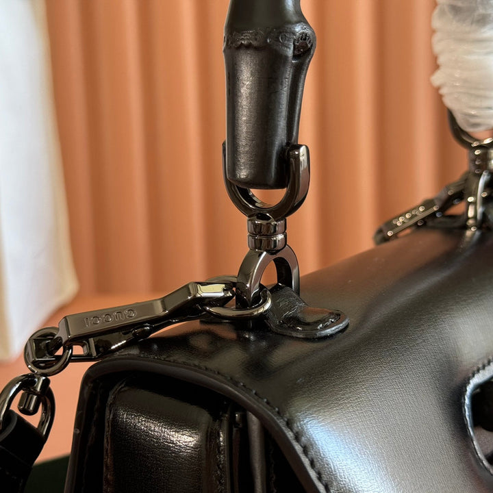GUCCI BAMBOO MINI BAG 21 FULL BLACK IN CALFSKIN