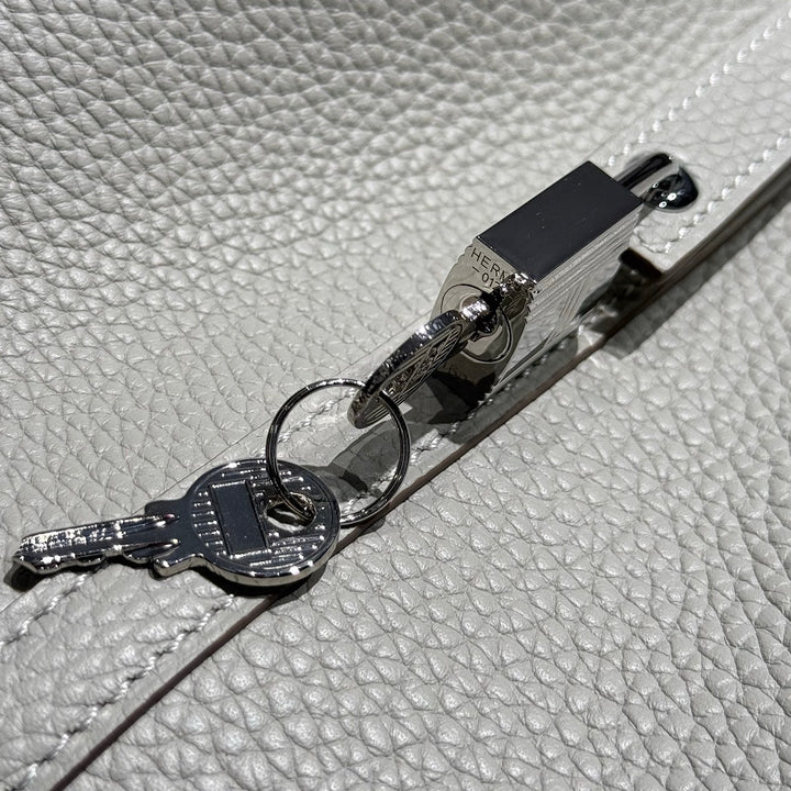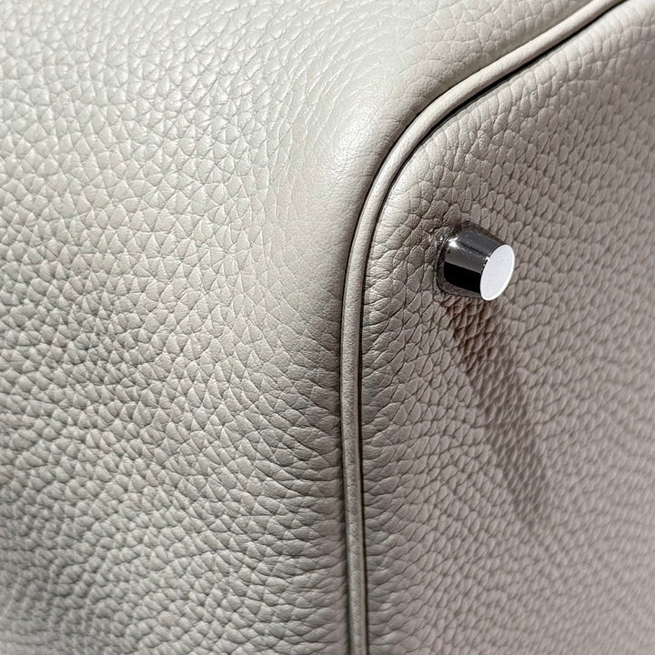 HERMES 25S PICOTIN LOCK 22 IN IVORY CALFSKIN SILVER HARDWARE
