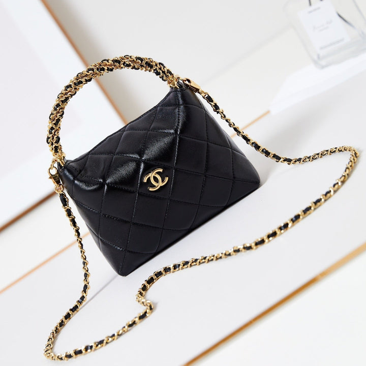 HOBO BAG 18 IN BLACK SOFT LAMBSKIN GOLD CHAIN