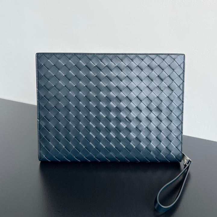 INTRECCIATO CLUTCH 32 IN PICKLED BLUEWOOD SOFT CALFSKIN