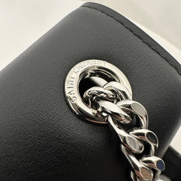 KATE TASSEL 20 BLACK CALFSKIN WITH SILVER LOGO