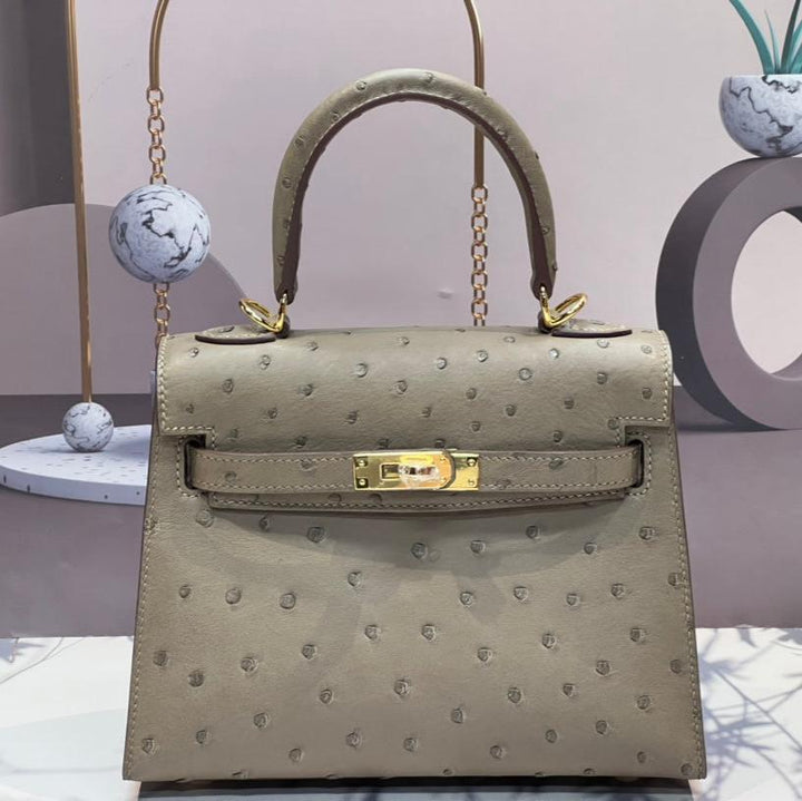 KELLY BAG 20 IN KHAKI BEIGE OSTRICH LEATHER WITH GOLD HARDWARE (MADE-TO-ODER)