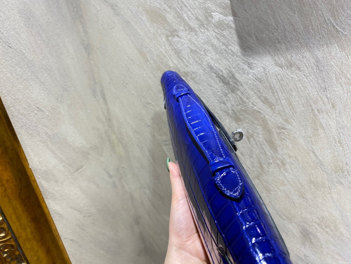 KELLY CUT 31 IN ADMIRAL BLUE SHINNY ALLIGATOR LEATHER WITH SILVER HARDWARE (MADE-TO-ODER)