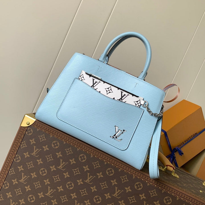 MARELLE TOTE BB BAG 30 IN BLEU NUAGE BLUE EPI GRAIN COWHIDE LEATHER