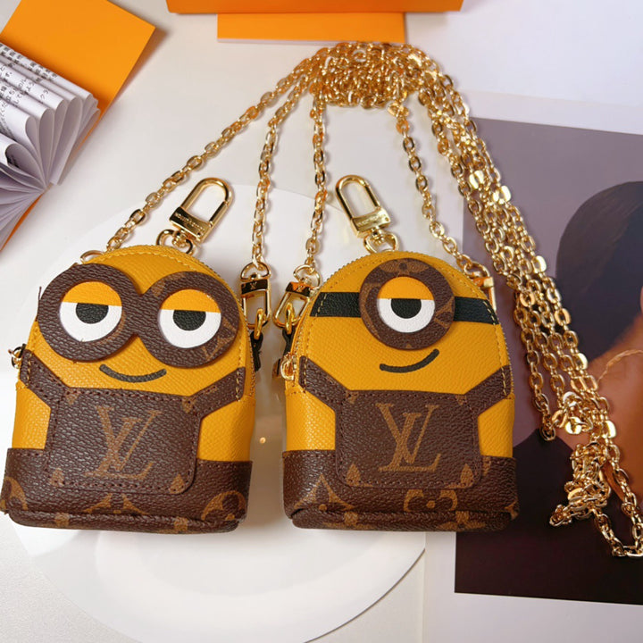 ?Minions chain crossbody bag, mini size, can hold bank cards, Bluetooth, keychain, coin purse, charm, comes with chain for crossbody wear.