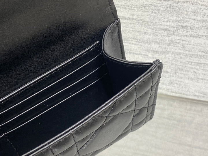 MISS CARO TOP HANDLE POUCH 24 IN BLACK MACROCANNAGE LAMBSKIN