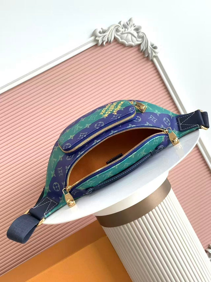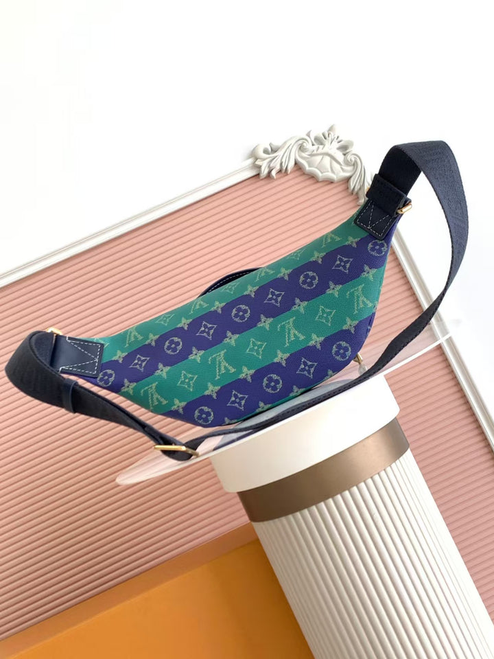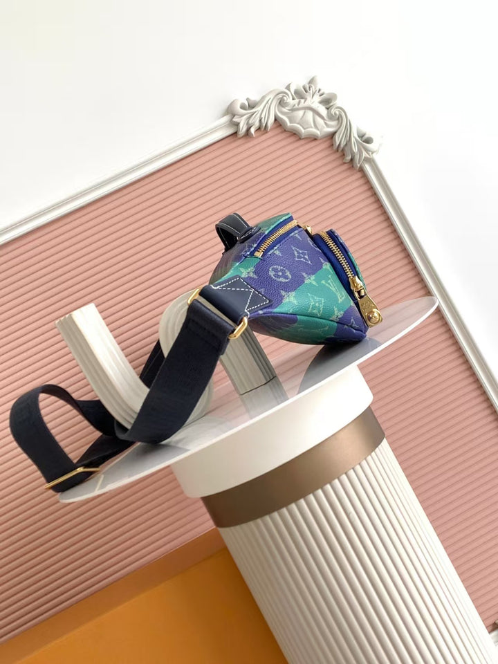 ?Belt bag crafted from two-tone Monogram Heritage canvas with leather trim.