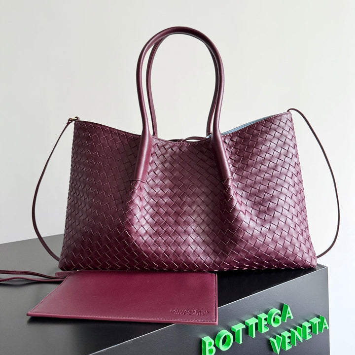 PINACOTECA REVERSIBLE TOTE BAG 43 IN MADDER BROWN LAMBSKIN AND LIGHT BLUE SUEDE