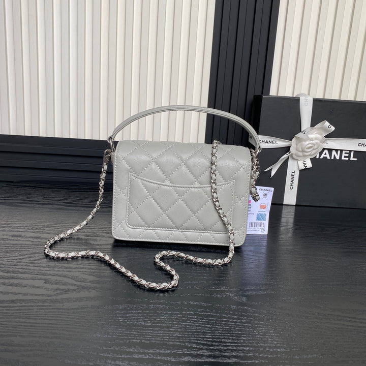 RETRO STYLE FLAP BAG 19 IN RHINO GRAY GRAINED CALFSKIN GOLD HARDWARE