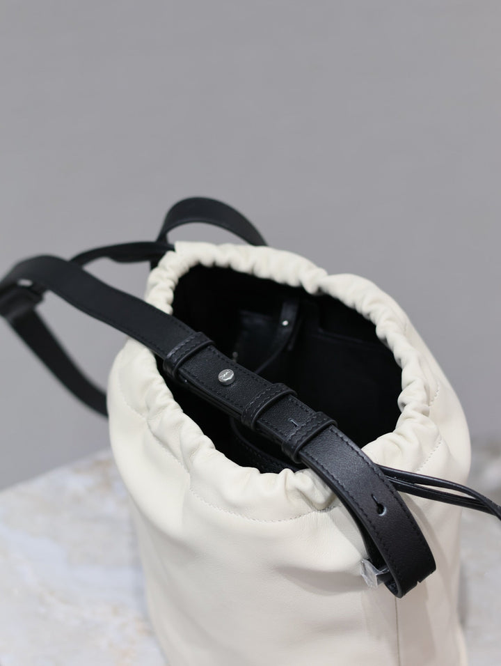 RIVE GAUCHE BUCKET BAG 23 IN WHITE CALFSKIN