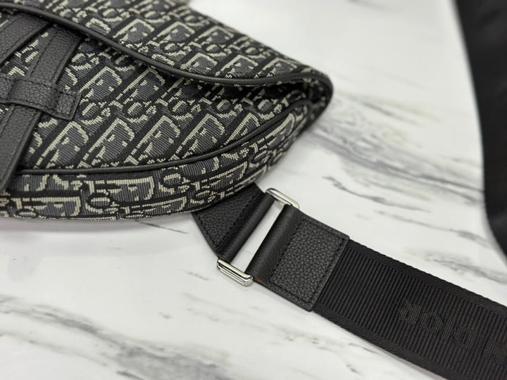 SADDLE 28 BAG IN BLACK OBLIQUE JACQUARD