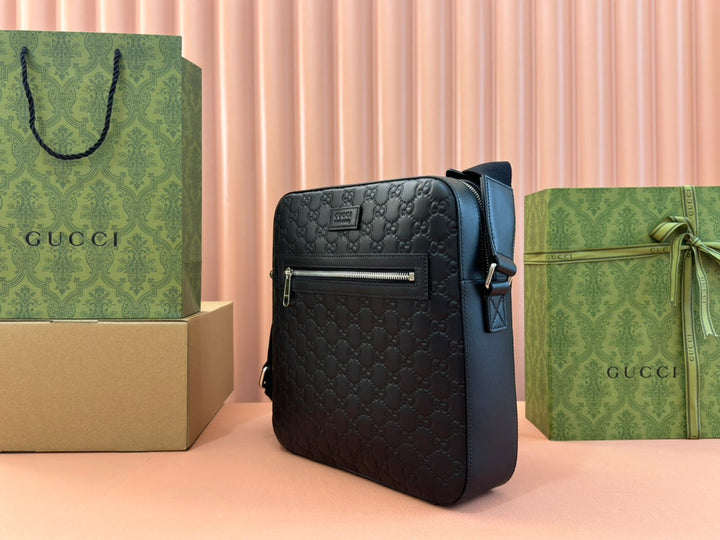 SIGNATURE MESSENGER BAG 28 IN BLACK GG CALFSKIN