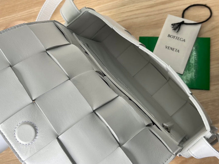 SMALL CASSETTE 23 IN WHITE FRINGED CALFSKIN