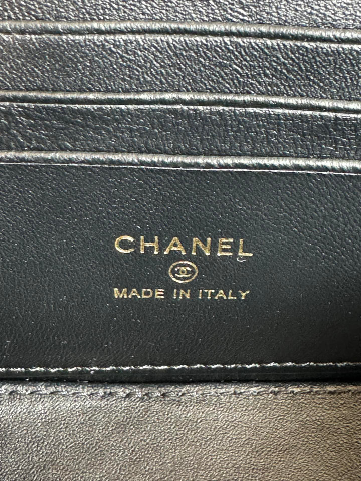 SMALL VANITY CASE 17 WITH HANDLE IN BLACK CALFSKIN GOLD METAL CHAIN