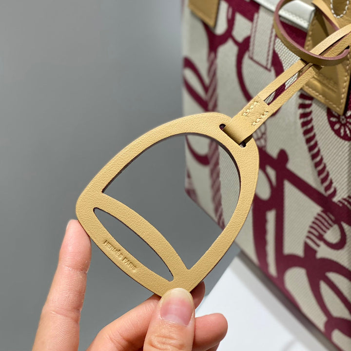 STEEPLE 28 BAG IN OFF-WHITE MIX PERSIAN PLUM RED CANVAS AND BROWN SWIFT LEATHER