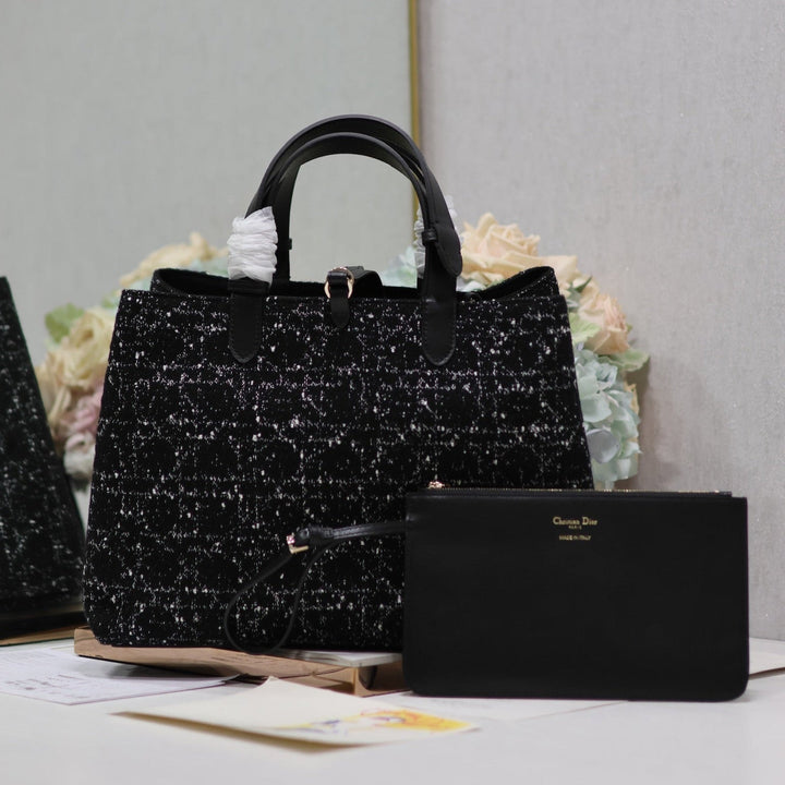 TOUJOURS BAG 37 IN BLACK MIX WHITE CANNAGE TWEED WITH GOLD HARDWARE