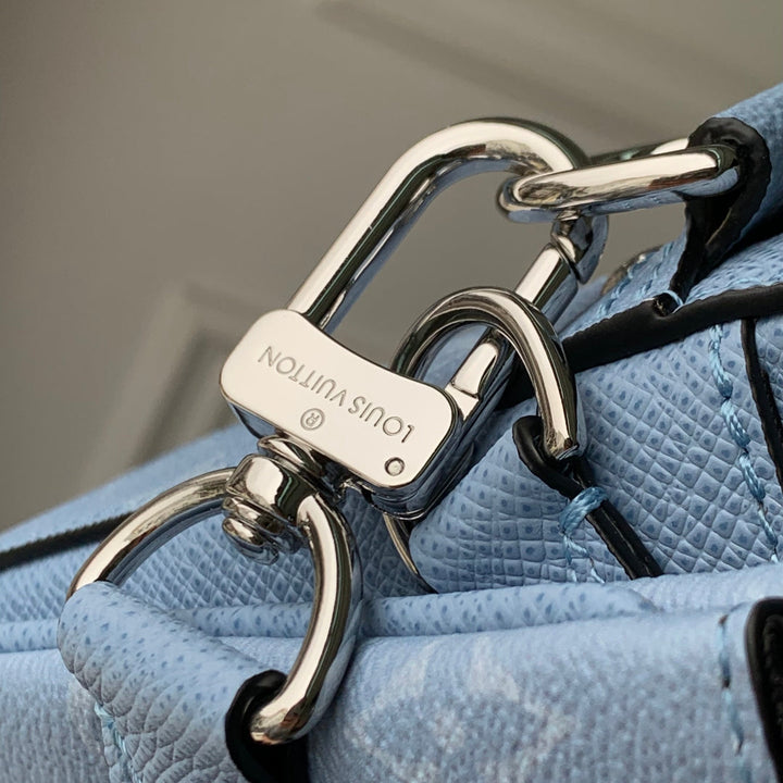 TRIO MESSENGER BAG 25 IN BLUE MONOGRAM COATED CANVAS AND CALFSKIN