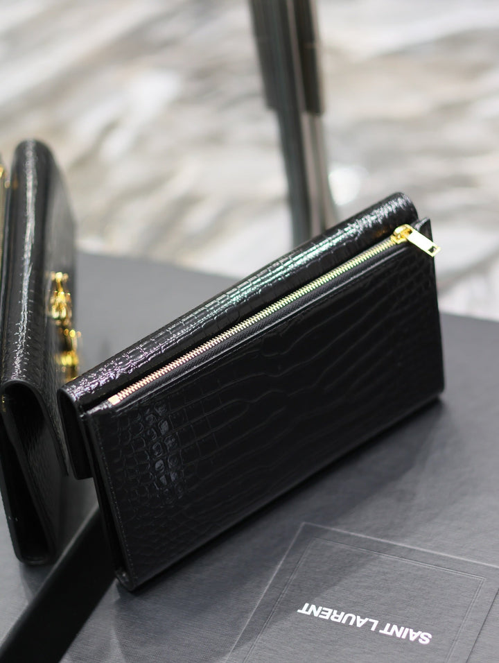 UPTOWN WALLET 21 IN BLACK CROCODILE PATTERN CALFSKIN GOLD LOGO
