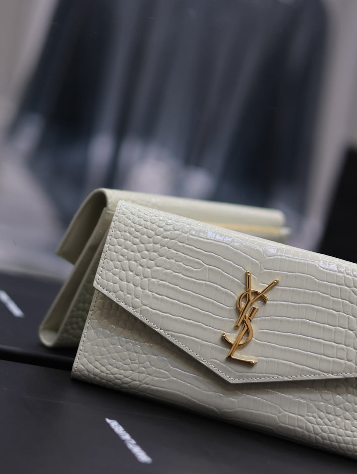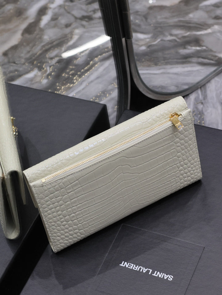 UPTOWN WALLET 21 IN WHITE CROCODILE PATTERN CALFSKIN GOLD LOGO