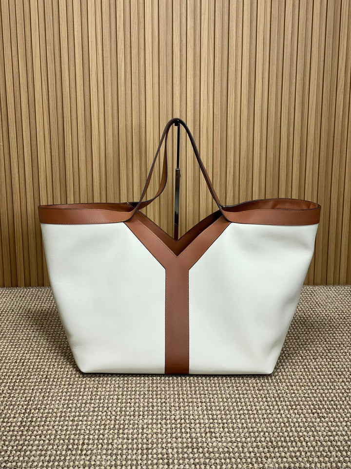 Y TOTE BAG 39 IN TAWNY BROWN MIX WHITE CALFSKIN