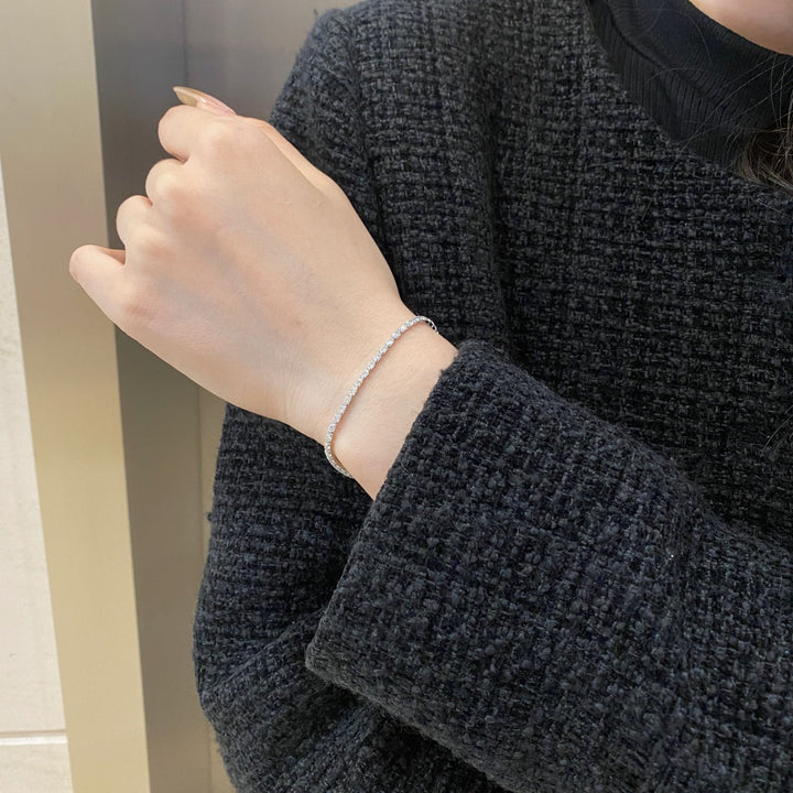 New Trending S925 Sterling Silver/Rhodium One Piece Jewelry Bracelet Chain For Women Luxury Zircon