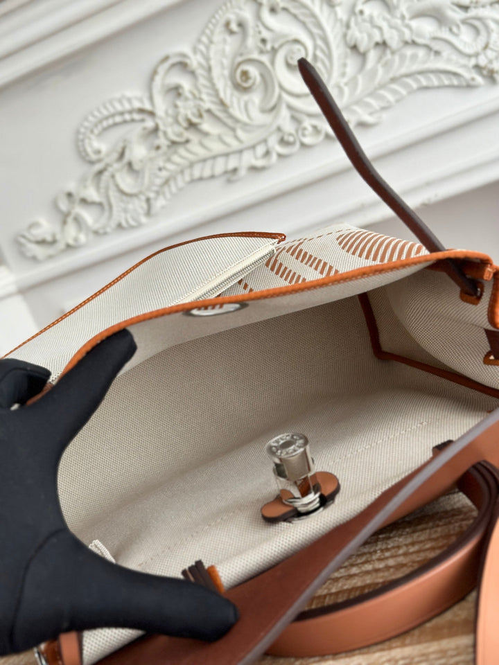 BOLSO HERBAG ZIP 31 RETOURNE BAG IN OFF-WHITE MIX BROWN H VIKING CANVAS AND COWHIDE