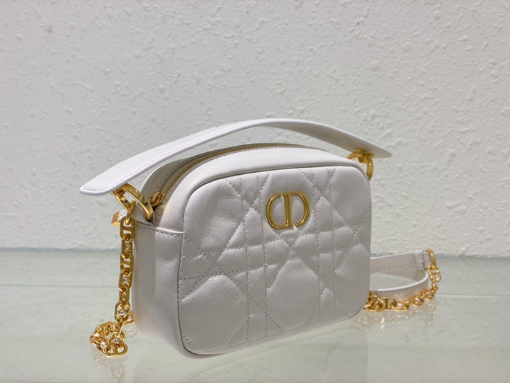 CARO BOX BAG 19 IN WHITE QUILTED MACROCANNAGE CALFSKIN