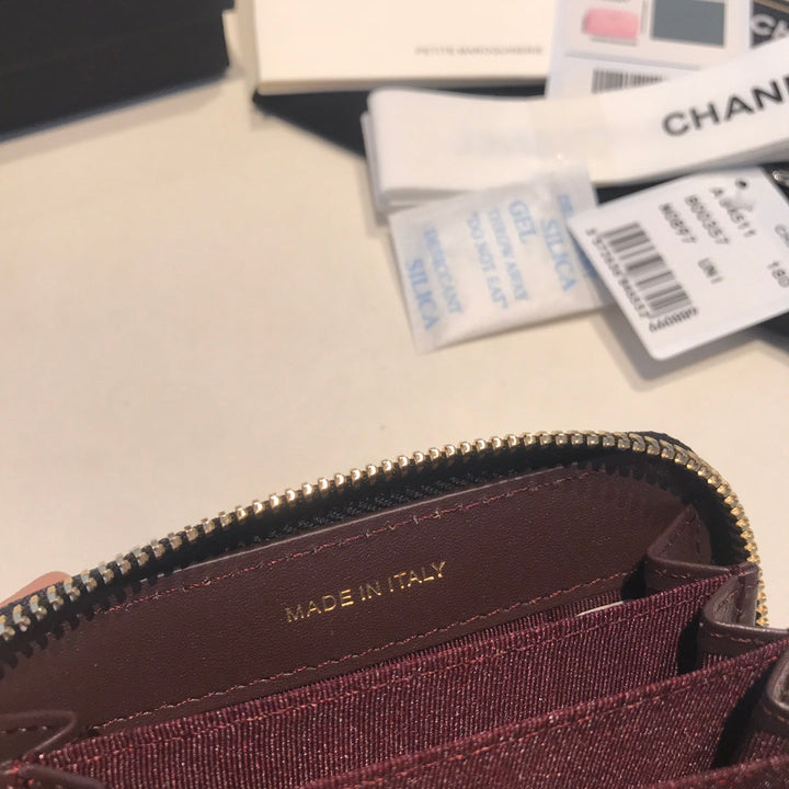 CC ZIPPED CAVIAR PURSE 11 BLACK CALFSKIN GOLD ICON