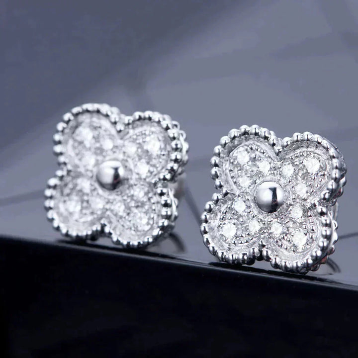 ˇMagic JewelryˇCLOVER 1 MOTIFS DIAMOND STUD EARRINGS SILVER