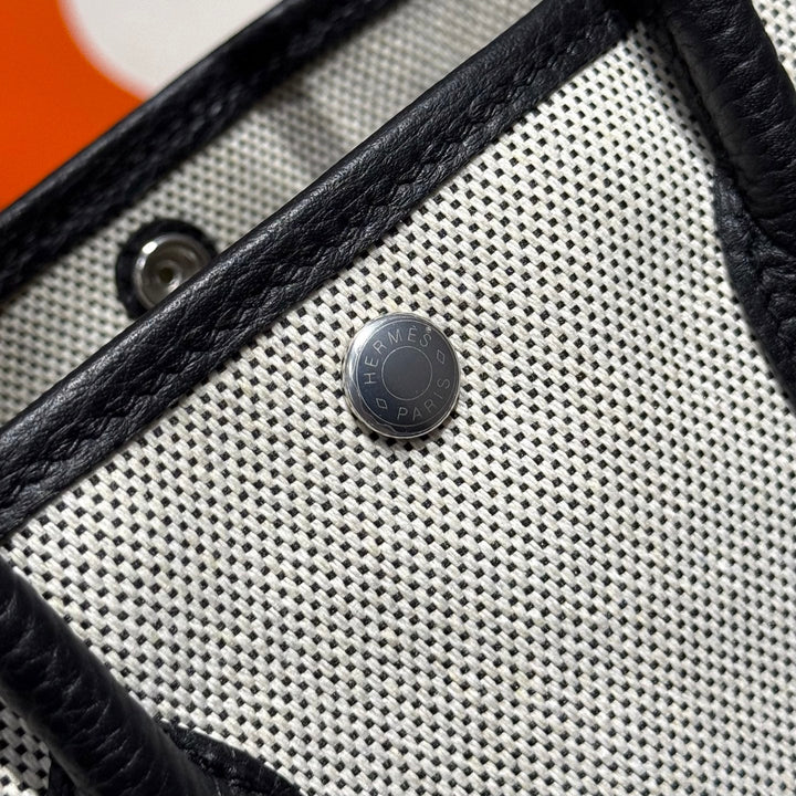 GARDEN PARTY 23CM IN WHITE TOILETS COTTON CANVAS AND BLACK CALFSKIN