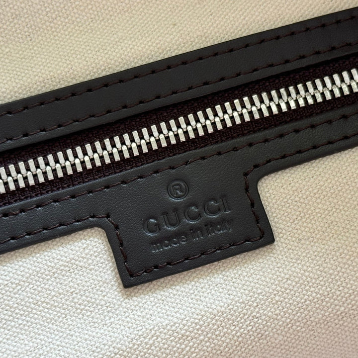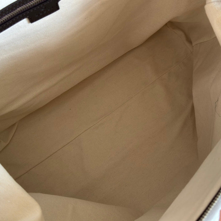 GUCCI 25S OPHIDIA MEDIUM DUFFLE BAG 44 IN BEIGE CANVAS AND BROWN CALFSKIN