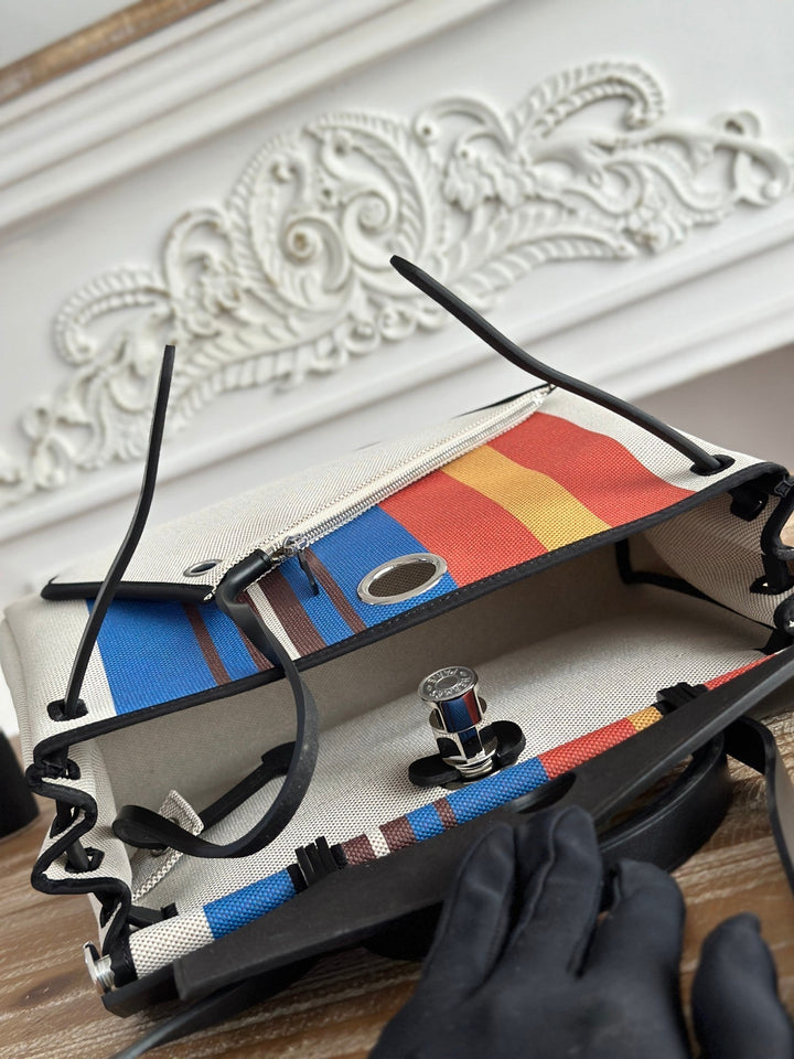 HERBAG ZIP 31 LAQUERED BAG IN BLUE MIX RED H PLUME CANVAS