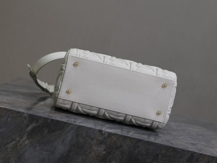 LADY BAG 24 IN WHITE GRAPHIC CANNAGE CALFSKIN PALE GOLD-FINISH METAL CHARMS
