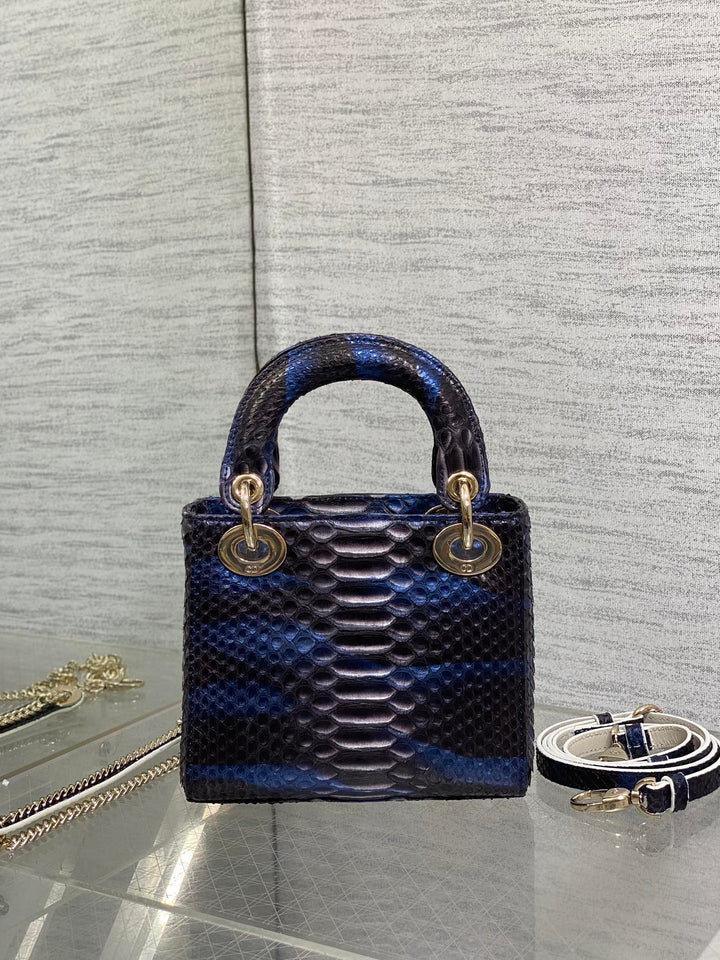 MINI 17 LADY BAG IN NAVY BLUE MIX BLACK SNAKESKIN PATTERN LAMBSKIN