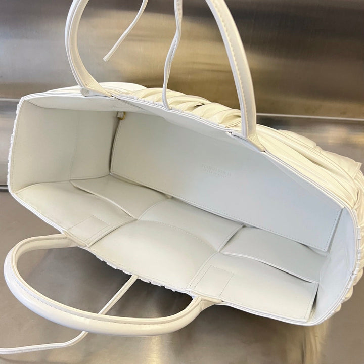 SMALL ARCO TOTE 30 IN WHITE SOFT LAMBSKIN