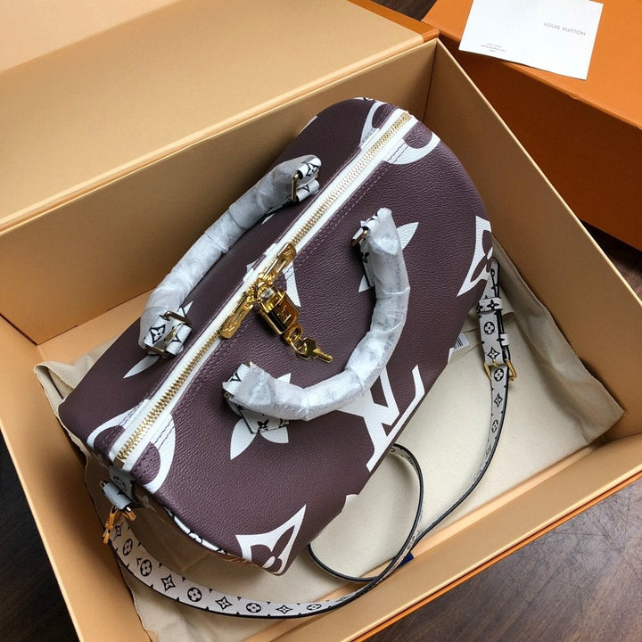 SPEEDY BANDOULIERE 30 BROWN WHITE GIANT MONOGRAM CANVAS